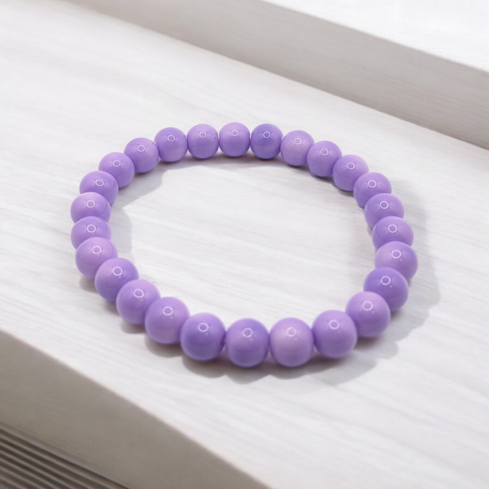 Embrace a touch of gentle elegance with the "Pastel Lavender Bracelet." This enchanting piece features 8mm glass beads in a soothing pastel purple, each bead reflecting a soft, dreamy hue that adds a subtle pop of color to your look. Measuring 7 inches in length, the bracelet offers a comfortable fit, perfect for both daily wear and special occasions.