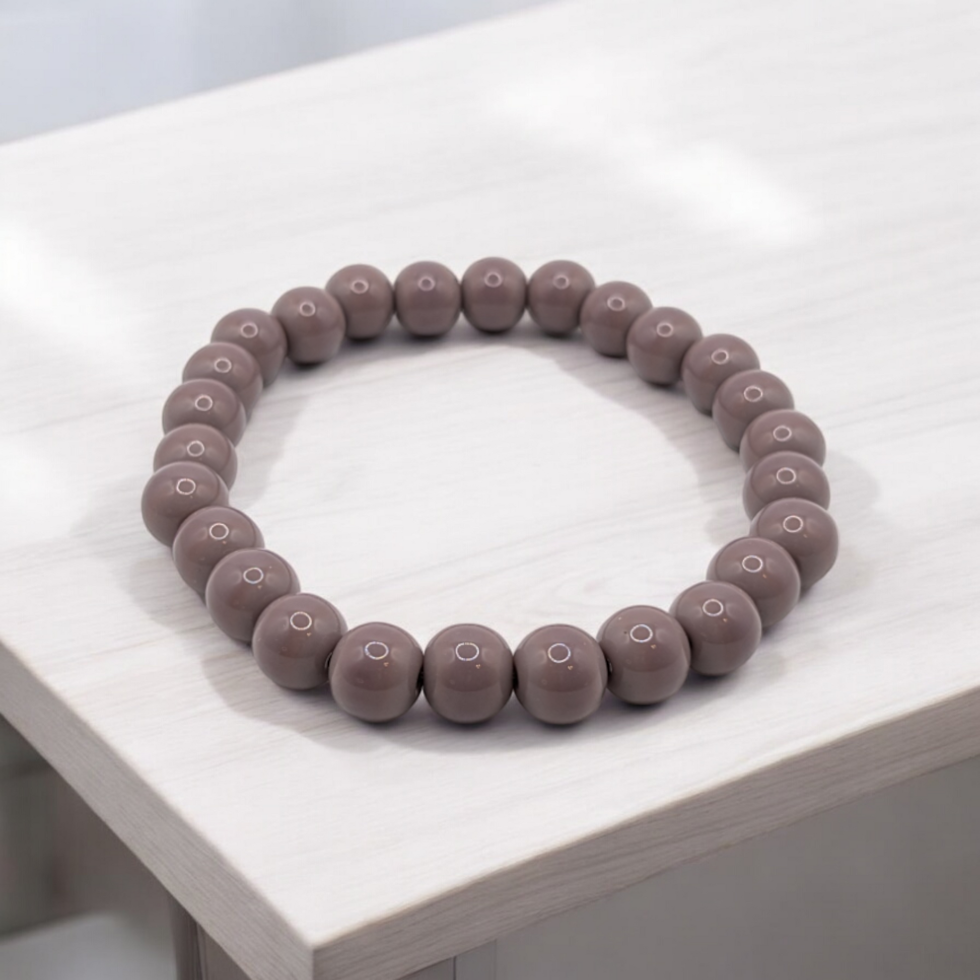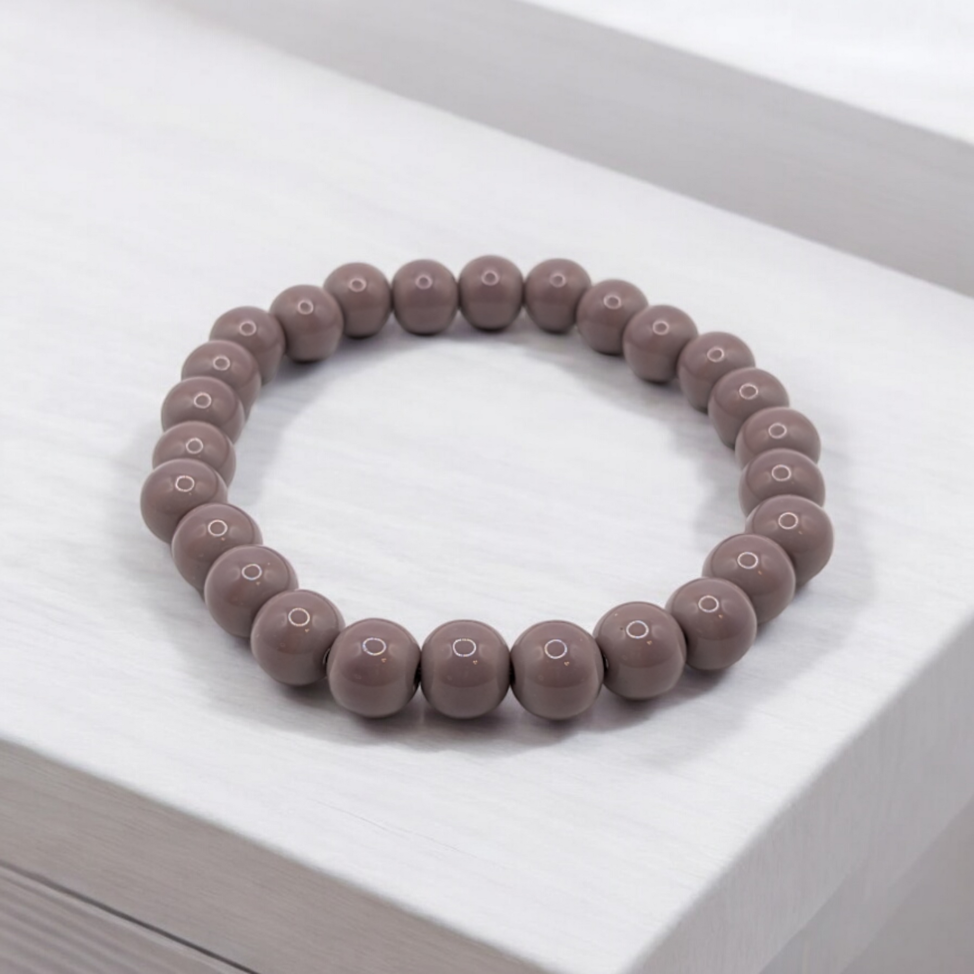 Introducing the "Glassy Mauve Bracelet," a refined piece that embodies subtle sophistication and grace. This bracelet features 8mm glass beads in a gentle pastel mauve shade, each bead radiating a soft, muted tone that adds a touch of elegance to your ensemble. At 6.75 inches long, the bracelet is designed for a comfortable fit, perfect for everyday wear or special occasions.