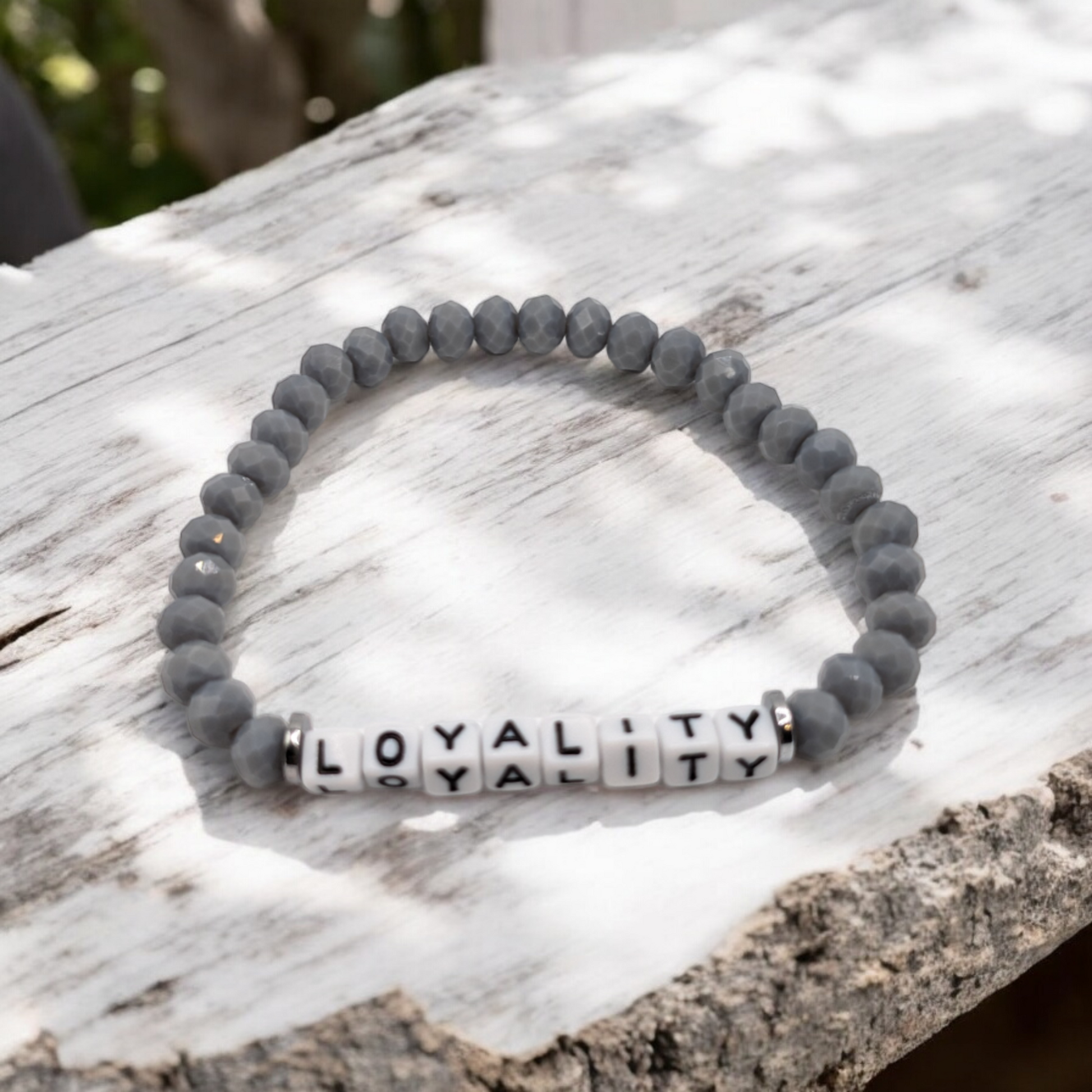 The bracelet is adorned with square beads that spell out the heartfelt word "Loyalty," serving as a constant reminder of steadfastness and commitment. Measuring 6.75 inches in length, the "Loyalty Sparkle Bracelet" offers a comfortable and secure fit, making it perfect for everyday wear or special occasions. Embrace this bracelet's timeless beauty and significance, and let it symbolize the deep and enduring bonds that define your most cherished relationships.